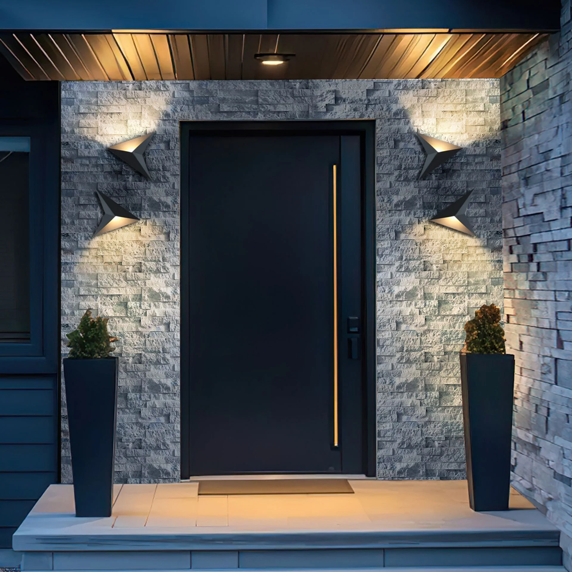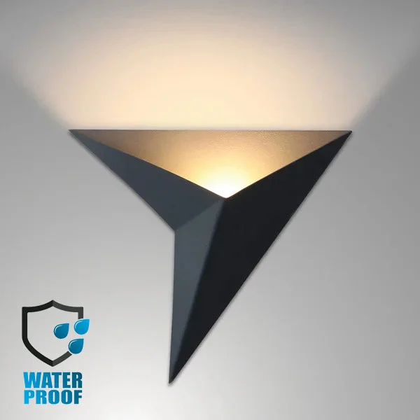آنچه چراغ دیواری ضدآب کد ۹۱۰ را از بسیاری از محصولات مشابه متمایز می‌کند، طراحی هندسی مثلثی ‌شکل با زوایای برجسته و حجم‌ پردازی تیز و خطی است. این فرم خاص، علاوه بر نقش دکوراتیو، عملکردی کاملاً هدفمند در کنترل الگوی پخش نور دارد. این چراغ دیواری ضدآب با توان مصرفی ۸ وات و منبع نور LED، خروجی نوری متمرکز و زاویه ‌دار ایجاد می‌کند؛ به ‌طوری‌که نور از قسمت فوقانی چراغ به سمت بالا و محیط اطراف بازتاب می‌شود و بر روی دیوار جلوه‌ای سایه‌روشن و مدرن ایجاد می‌کند. این نوع پخش نور که به اصطلاح “نورپردازی زاویه‌ای یا خطی” نام دارد، یک جلوه بصری بسیار جذاب و خاص ایجاد می‌کند که دیوار و فضا را از حالت یکنواخت خارج کرده و به آن بُعد و عمق می‌ بخشد.
